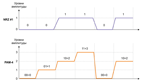 В настоящее время PAM4 со скоростями 25G и 50G широко используется в оборудрвании центров обработки данных, таких как коммутаторы и сервера с интерфейсами 200G/400G/800G Ethernet.